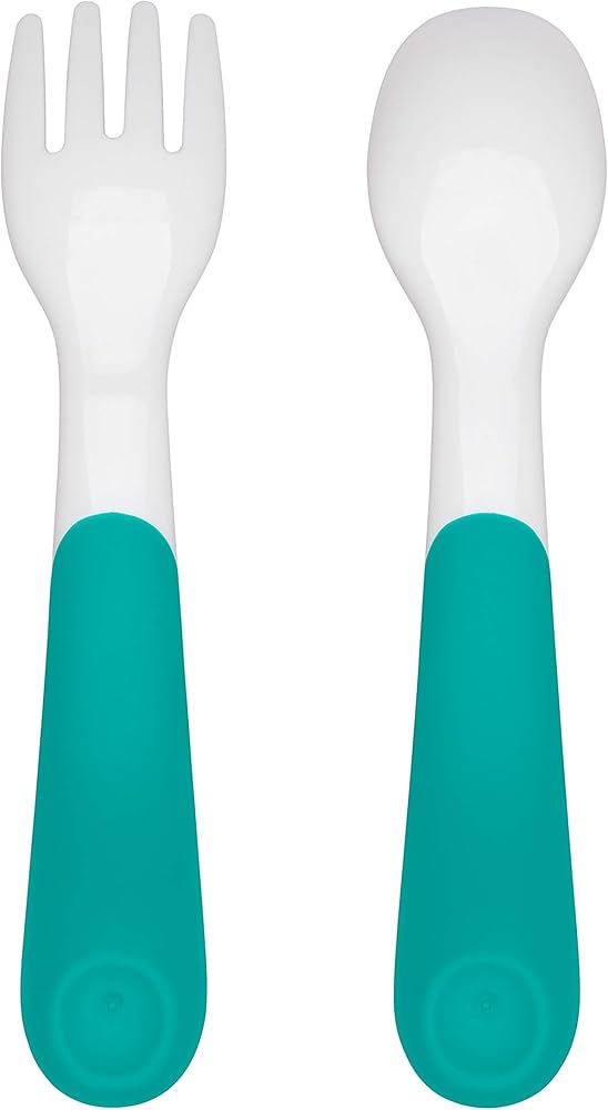 Whether taking your tot on a picnic, or sending them off to school, the On-the-Go Fork & Spoon Set is designed to be easy for them to use. The Fork tines are effective enough for picking up food, but not too sharp to protect little fingers, and the deep Spoon shape makes it easy to scoop. The curved, non-slip handles are easy for learning hands to hold and feature a flat spot to keep them from rolling away. The Fork & Spoon fit neatly in their compact travel case, which can be easily tucked into lunchboxes, diaper bags or purses for on-the-go-meals.