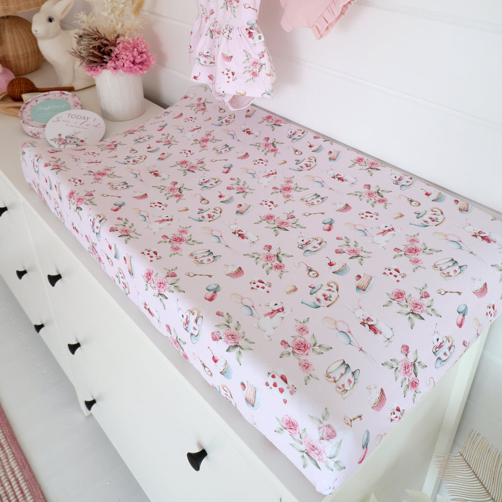 Snuggle Hunny Fitted Bassinet Sheet/Change Mat Cover - Alice's Tea Party