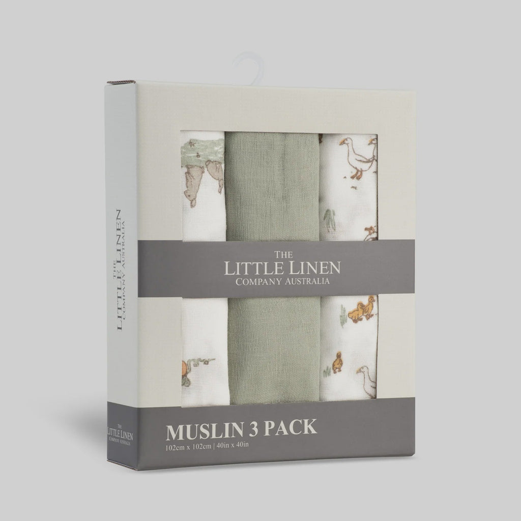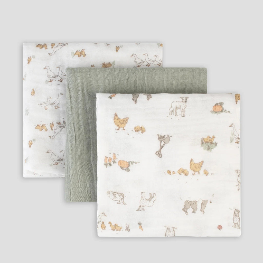 The Little Linen Co Baby Muslin Wrap 3pk - Farmyard Lamb