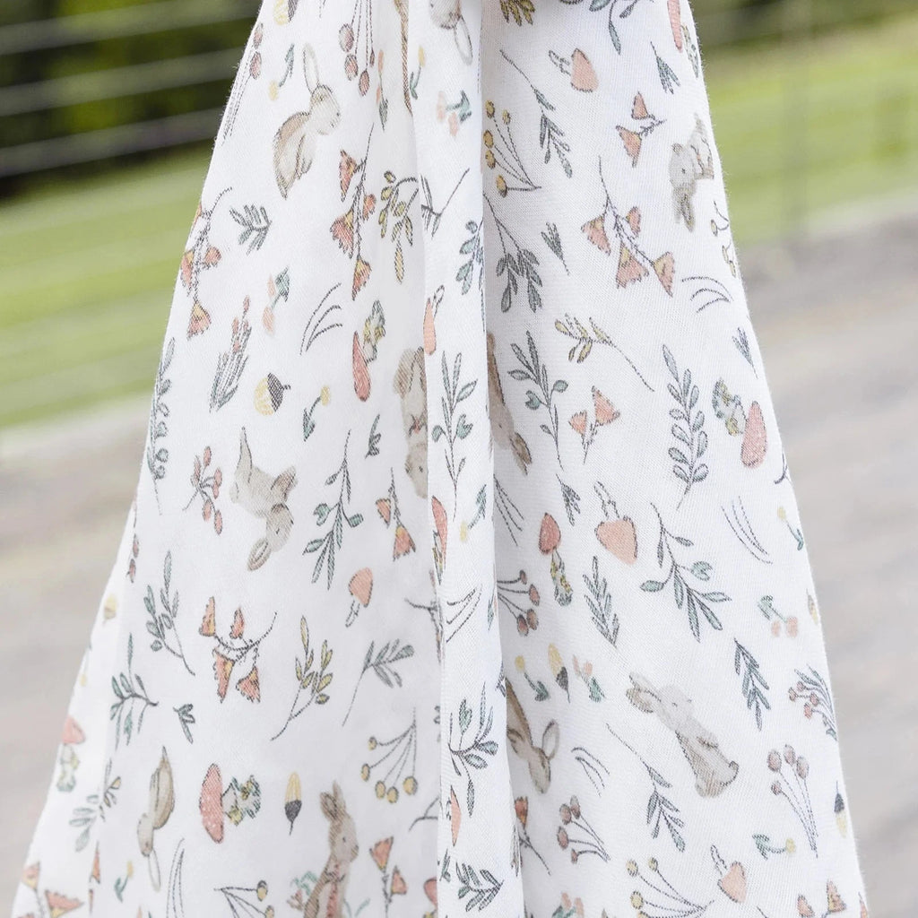 The Little Linen Company Muslin Wrap 1PK - Harvest Bunny. Soft and cozy, the lightweight fabric makes it ideal for swaddling your baby or using it as a nursing cover. It has many uses, including being a floor time play rug, lightweight blanket, change mat, burp cloth, and much more. This is a must-have for every parent. Embrace the comfort and style of this adorable muslin wrap.