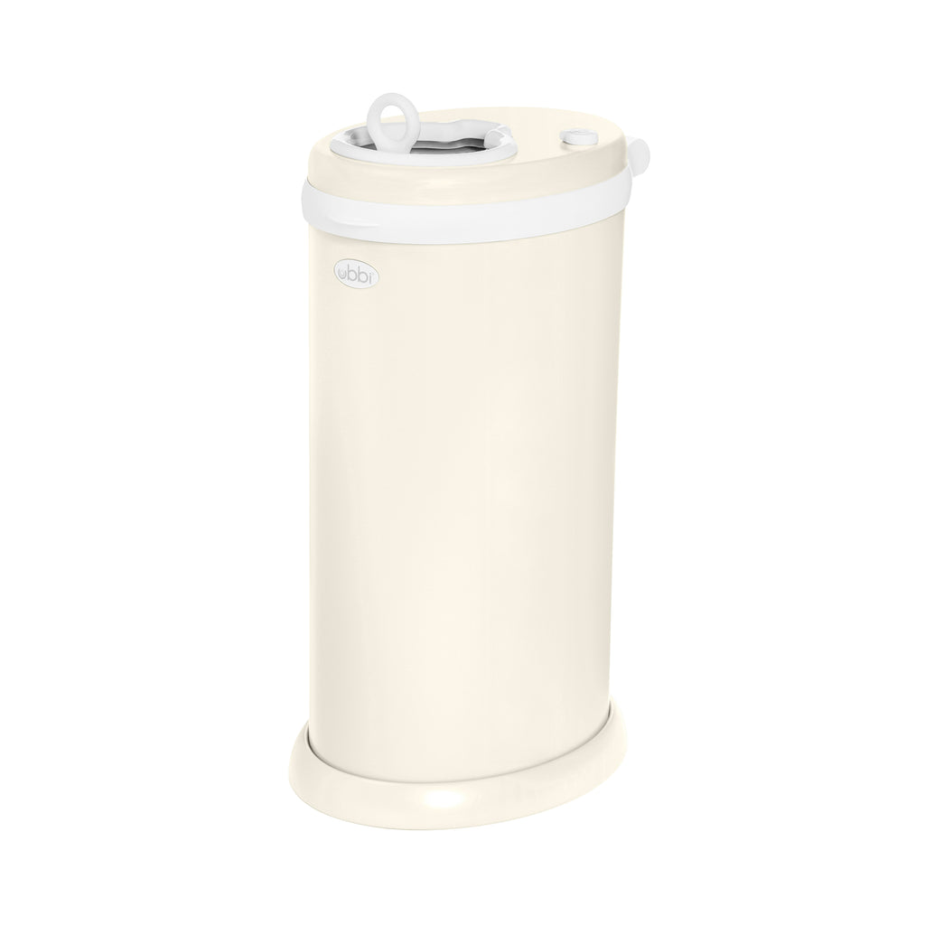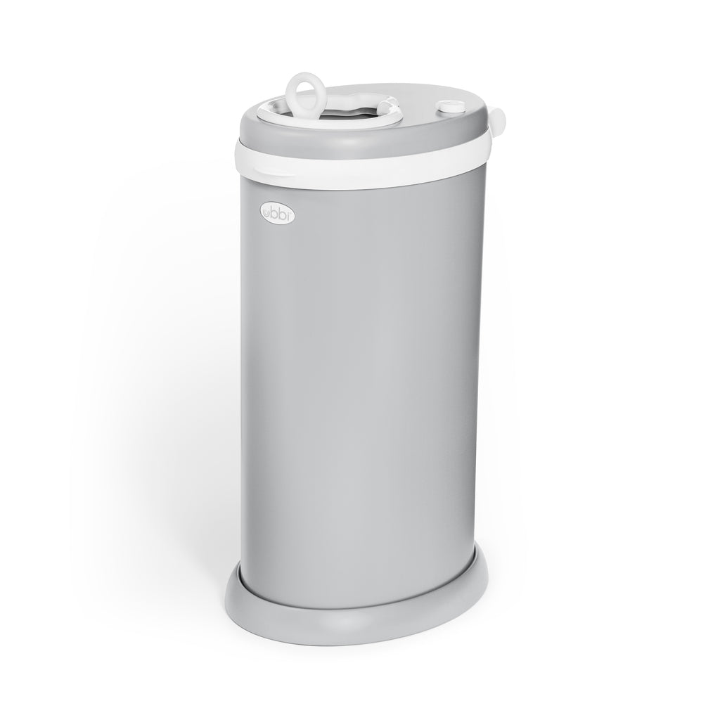 The Ubbi diaper pail is made of powder-coated steel to achieve maximum odor control. It is equipped with rubber seals that are strategically designed to lock in odors as well as a sliding lid that minimizes air disruption, keeping the smell inside the pail. This award winning nursery essential offers the convenience and value of utilizing any standard trash bag or reusable cloth liner. This feature makes it the easiest disposal system to load, use, empty and clean.