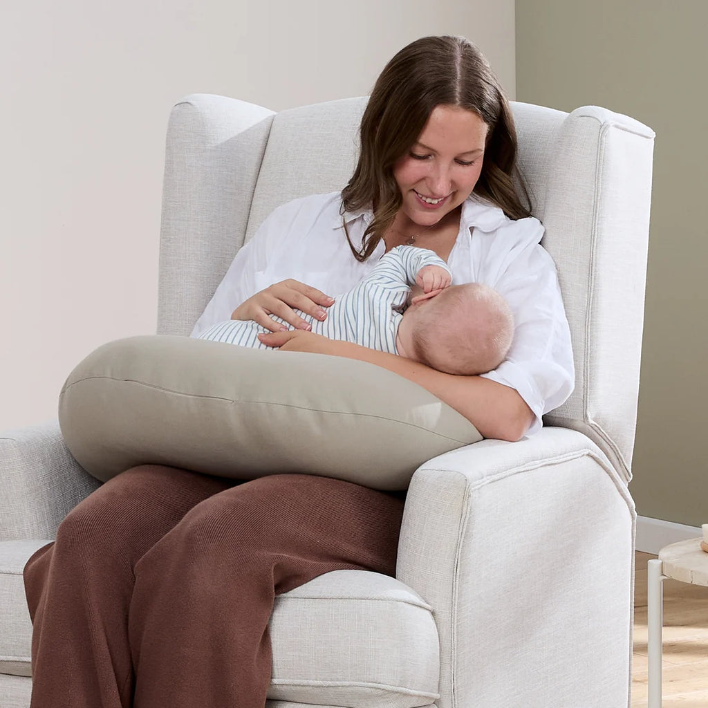 The Chelsea features a high backrest with an accessible recline function to rest your feet up as well as armrests at the correct height for relief while feeding your baby.