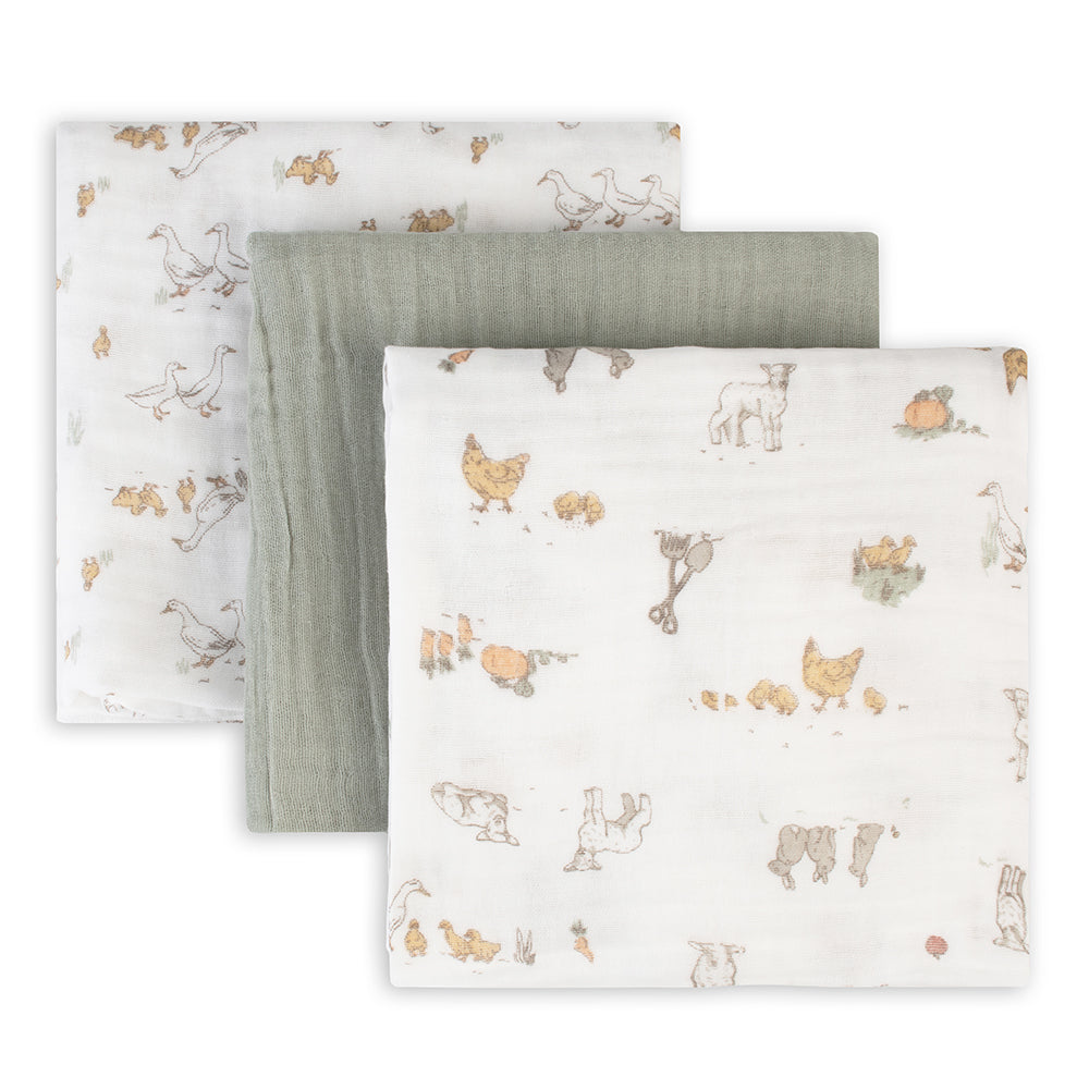 The Little Linen Co Baby Muslin Wrap 3pk - Farmyard Lamb